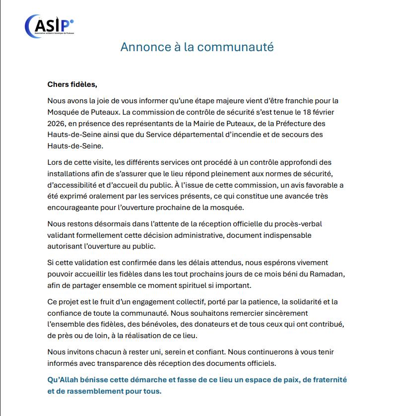 Notre association Solidaire Islamique de Puteaux (ASIP) vous invite le samedi 17 mai, de 10 h à 17 h, sur l’Île de Puteaux pour un moment d’échange et de découverte !